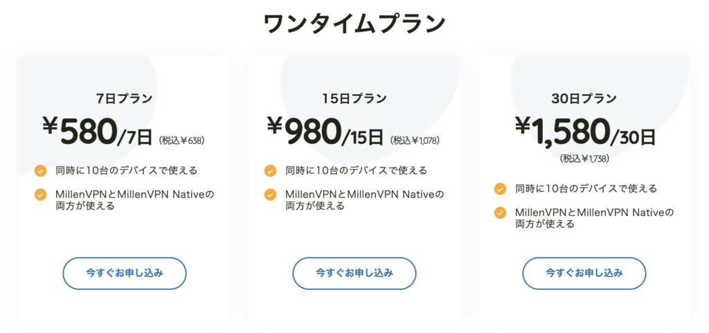 MillenVPNのワンタイムプランがおすすめ
